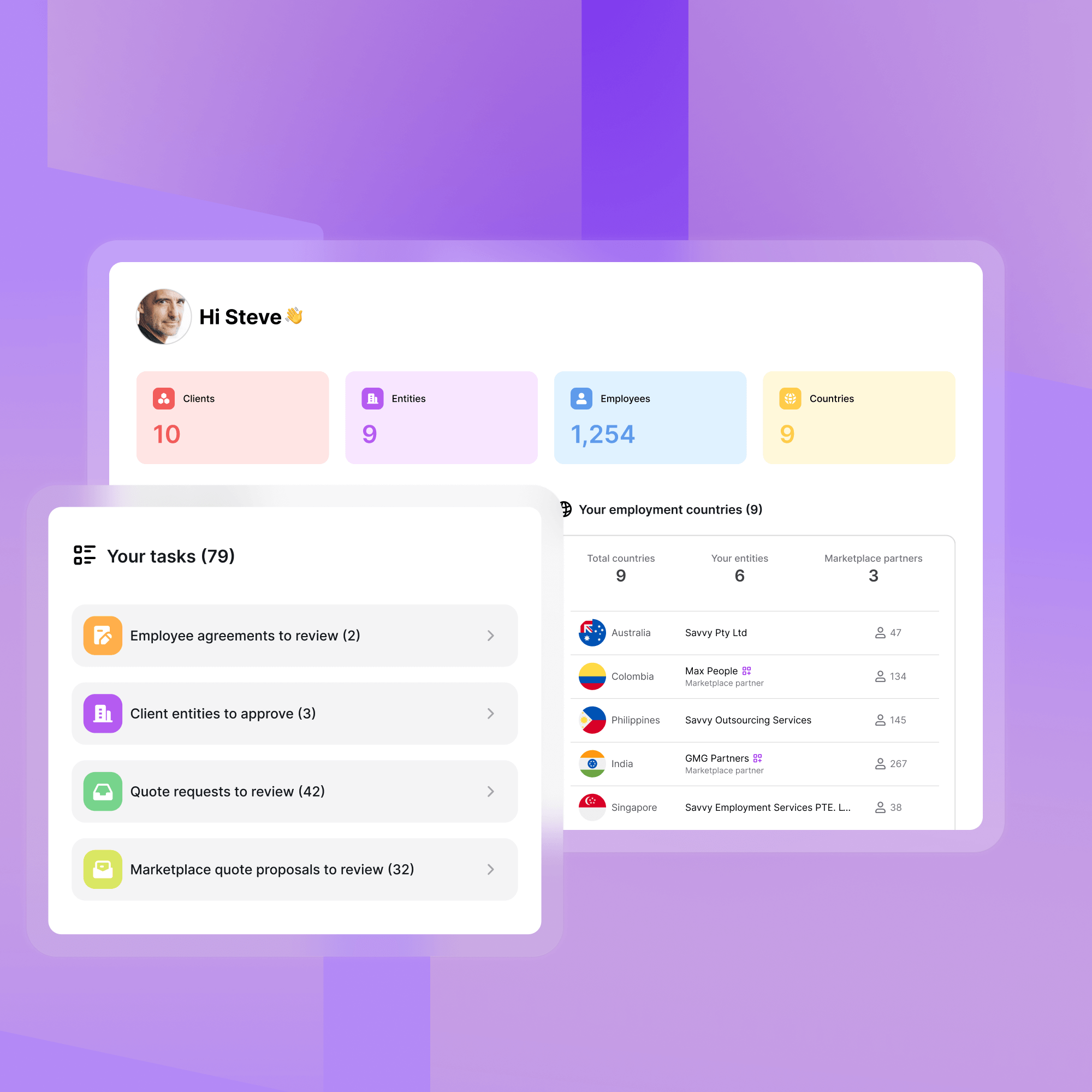Complete visibility across all clients, entities, and regions from a single, powerful admin panel.