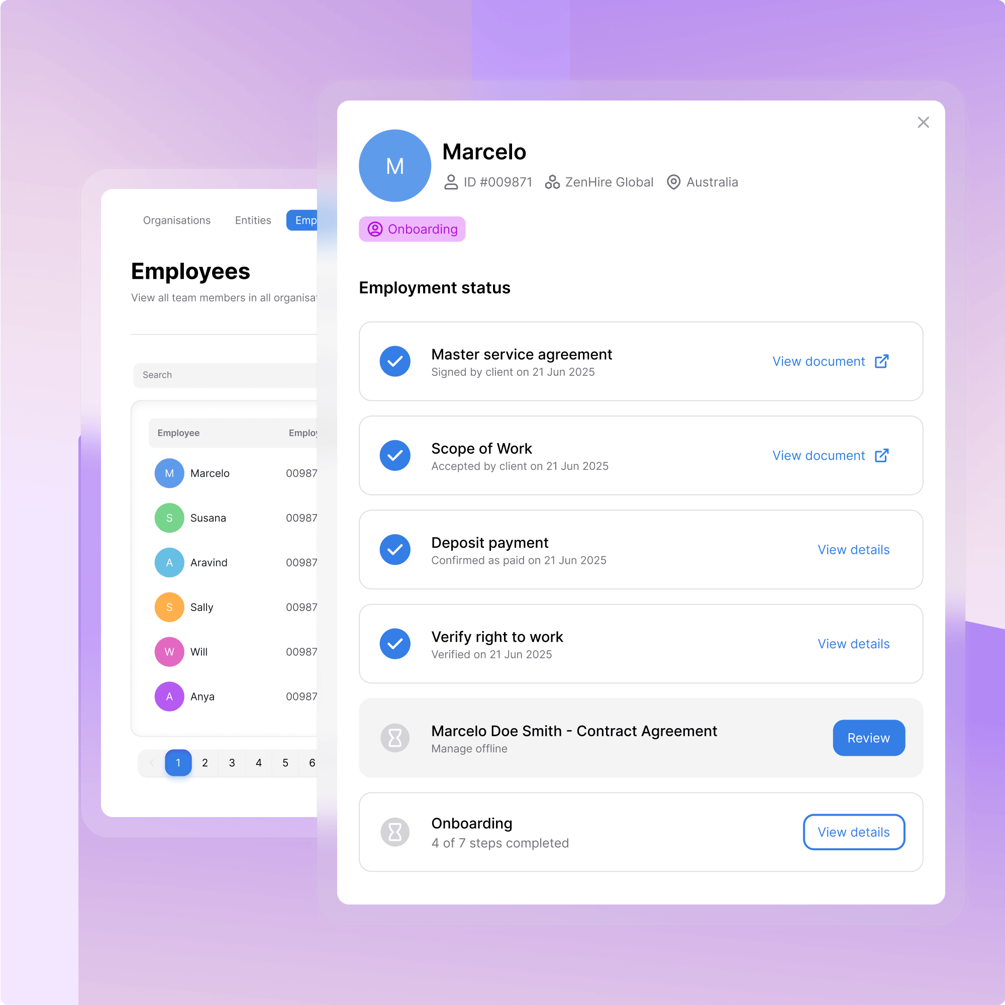 Access and manage employees across all client accounts at once. Search, filter, and perform bulk actions on thousands of employee records simultaneously – update details, process changes, or export data without touching individual accounts.